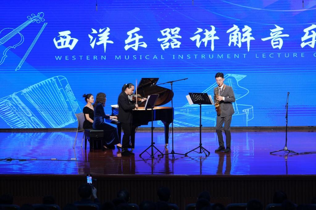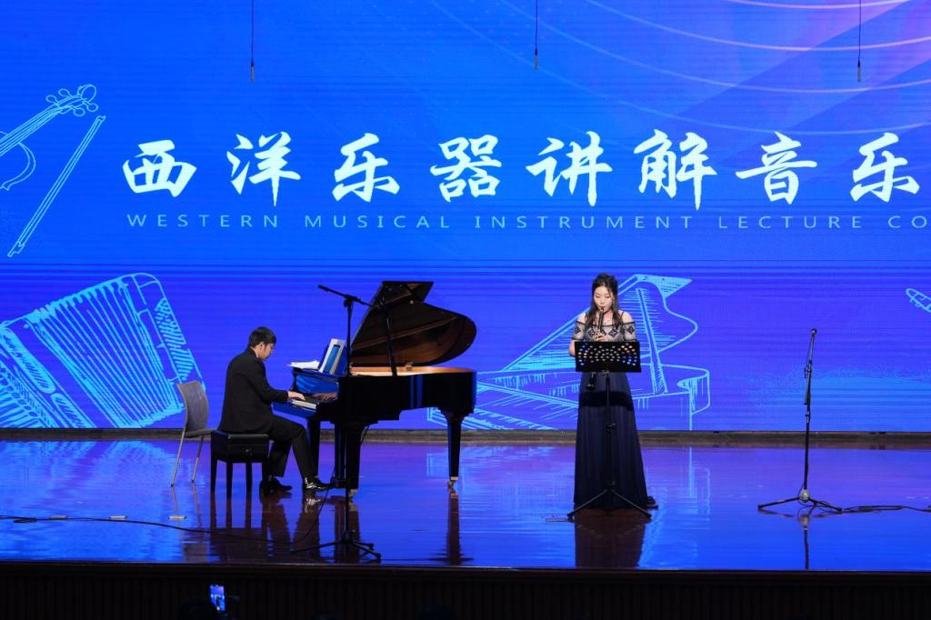 本场音乐会以“演奏+讲解”相结合的演出方式,每一种乐器出场前都会为同学们详细讲解乐器的构造、发展历史、演奏技巧以及演奏作品的创作背景。通过现场演奏,不仅使同学们了解了西洋乐器的魅力,更通过优美的旋律和深情的演绎,传递了美育浸润心灵的理念。音乐不仅是一种艺术表现形式,更是一种能够触动人心、陶冶性情的力量。