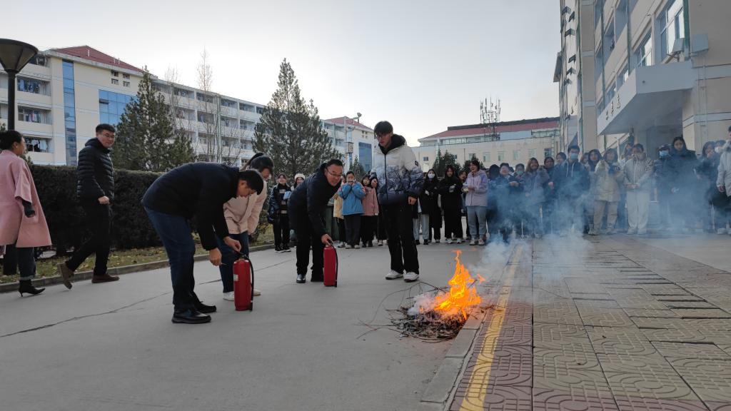 保卫处向老师耐心且细致地向学生们讲解了疏散要领、疏散逃生方法和防火注意事项,重点讲解灭火器使用方法和注意事项。同学们根据火情,调整站位,来到上风口,观摩灭火器的使用,并有部分学生代表进行实际操作试验。