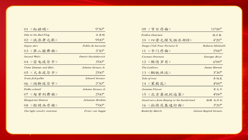 本场音乐会以《红旗颂》开篇,以雄壮激昂的音乐语汇,展现出中北大学在高质量发展征程中艰苦奋斗、砥砺前行的精神,让我们回顾过去,奋进未来。音乐会演绎不同时期、不同风格的经典交响乐章,勾勒出一幅宏伟而富有激情的音乐画卷。将经典与创新相得益彰,展示出乐团成员们卓越的演奏技巧,呈现交响音乐美的声韵。广大师生在音乐的海洋中尽情徜徉,共同奏响甲辰龙年新的乐章!