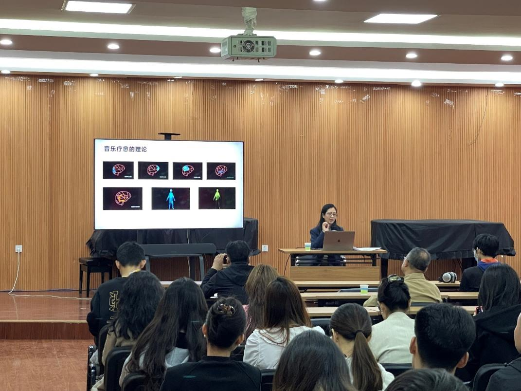 讲座深入浅出地阐释了音乐在人的生理发展过程中的重要作用。音乐不仅是一种文化现象,更是一种生理反应,它能够在不同地域和文化背景下,产生共鸣和疗愈作用。在现代社会,随着生活节奏的加快和工作压力的增大,越来越多的人面临着心理健康问题,针对这一现状可以通过数字音乐冥想的特定音乐引导,帮助人们进入冥想状态,从而实现对自我身心的观察、觉察与觉知。