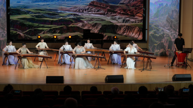 第二篇章“诗咏并州”立足太原千年文脉,以艺术形式诉说龙城历史底蕴与家国情怀。朗诵《诗咏并州·古今对话》跨越时空,串联起太原古今人文风貌,让千年文脉在声声朗诵中薪火相传;古筝重奏《黄土地的歌》弦音婉转,以传统器乐描摹三晋大地的壮阔与厚重,诉说对故土的深情;朗诵《英雄》慷慨激昂,致敬先辈、礼赞担当,彰显并州儿女的英雄气概与精神风骨;独唱《龙盘》歌声浑厚,尽显三晋大地的雄浑气魄。