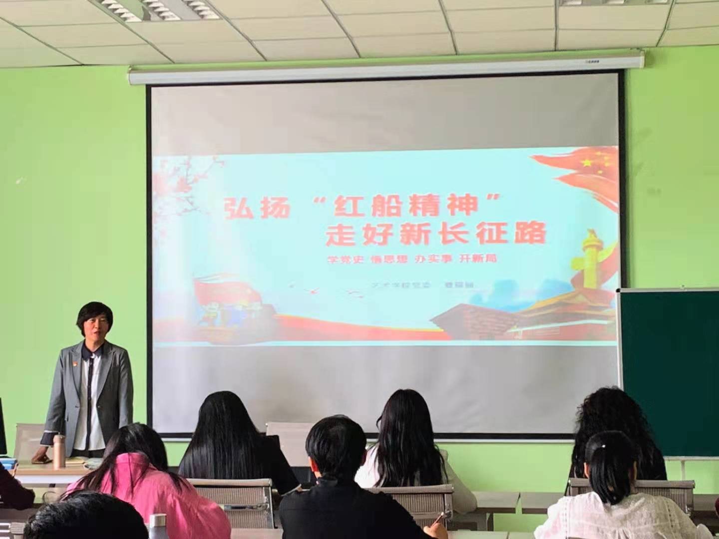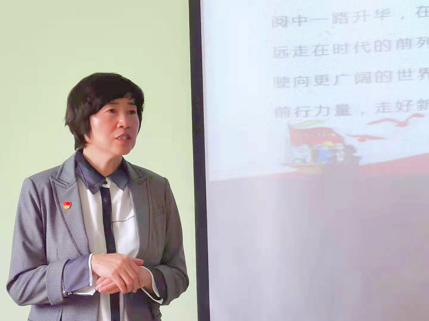 党委书记夏瑞丽以“弘扬红船精神 走好新长征路”为主题为在场全体师生党员作党史学习教育专题辅导。