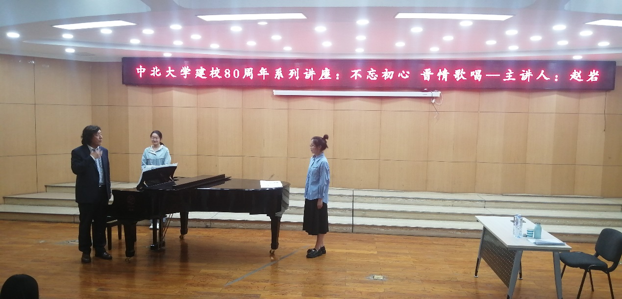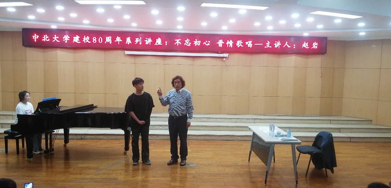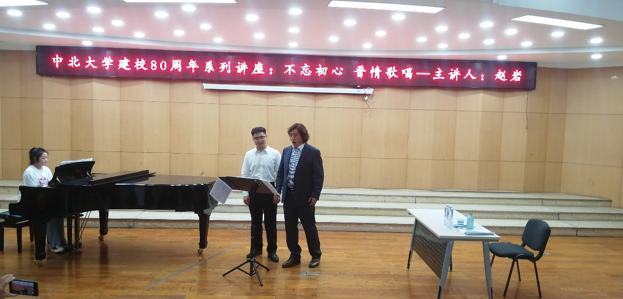 东音乐厅举办了庆祝中北大学建校八十周年系列学术讲座《不忘初心晋情歌唱》,由低男中音歌唱家赵岩先生主讲。