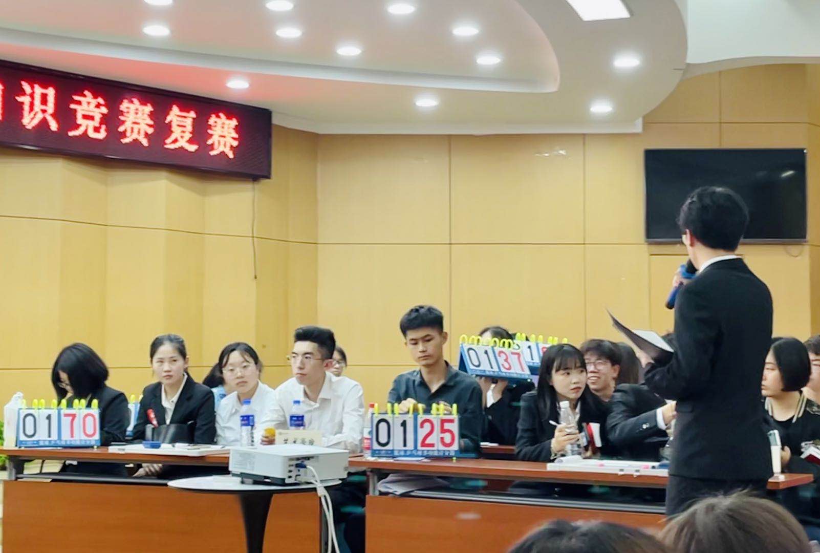 进入复赛的三名同学分别是研究生鲍晓梦、刘鑫智和本科生赵雨瑶。在准备的过程中,同学们很快进入了竞赛状态。在赛场上同学们过五关斩六将,顺利应对了现场答题后紧接着是抢答题环节,各小组踊跃抢答,你追我赶,展开了激烈角逐。比赛在“一站到底”环节中推向高潮,足球直播178