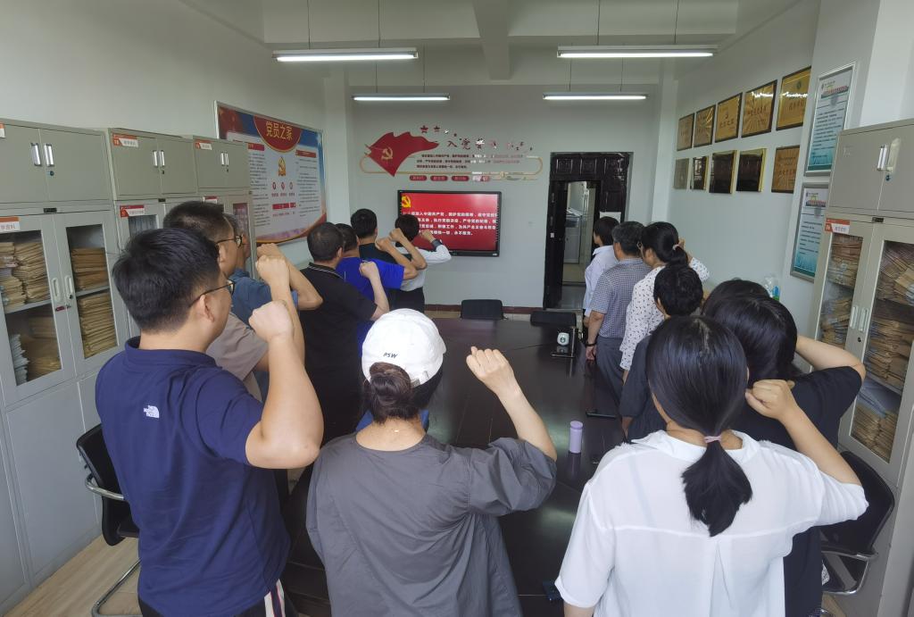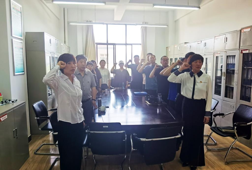 在庄严肃穆的国歌合唱中宣誓仪式正式开始,全体党员在支部书记张丽君领誓下重温入党誓词:“我志愿加入中国共产党……随时准备为党和人民牺牲一切,永不叛党。”党员同志们神情庄重、精神饱满、声音铿锵、句句千钧,再一次接受了心灵的洗礼,进一步坚定了立场信念和初心使命。