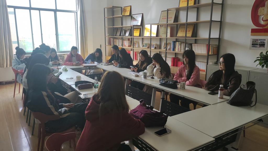 活动伊始,陈奕凝同志从会议内容、会议看点、会议精神和学习分享四个方面开展,随后,各小组组长组织党员分享两会学习的内容,胡柯菲同学说到,我们要自觉学习两会精神,磨练心性,将理论与实践相结合,以饱满的学习热情与认真的工作态度为我国教育事业发展出一份力。