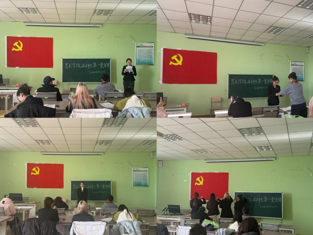 会议伊始,全体起立,奏唱国歌,会议在庄严的歌声中拉开序幕。孙艺榕首先报告了出席会议人数,宣布会议议题以及开会要求,并指定记录人员。之后,李佳等4位申请转正的预备党员分别汇报了自己在预备期间的表现,主要优缺点,今后努力的方向以及需要向党组织说清楚的问题。4名同志的考察联系人分别发表意见,汇报了李佳等4名同志在预备期间的教育和考察情况。经过与会党员充分讨论、投票决定,一致同意李佳等4名同志按期转为中共正式党员。