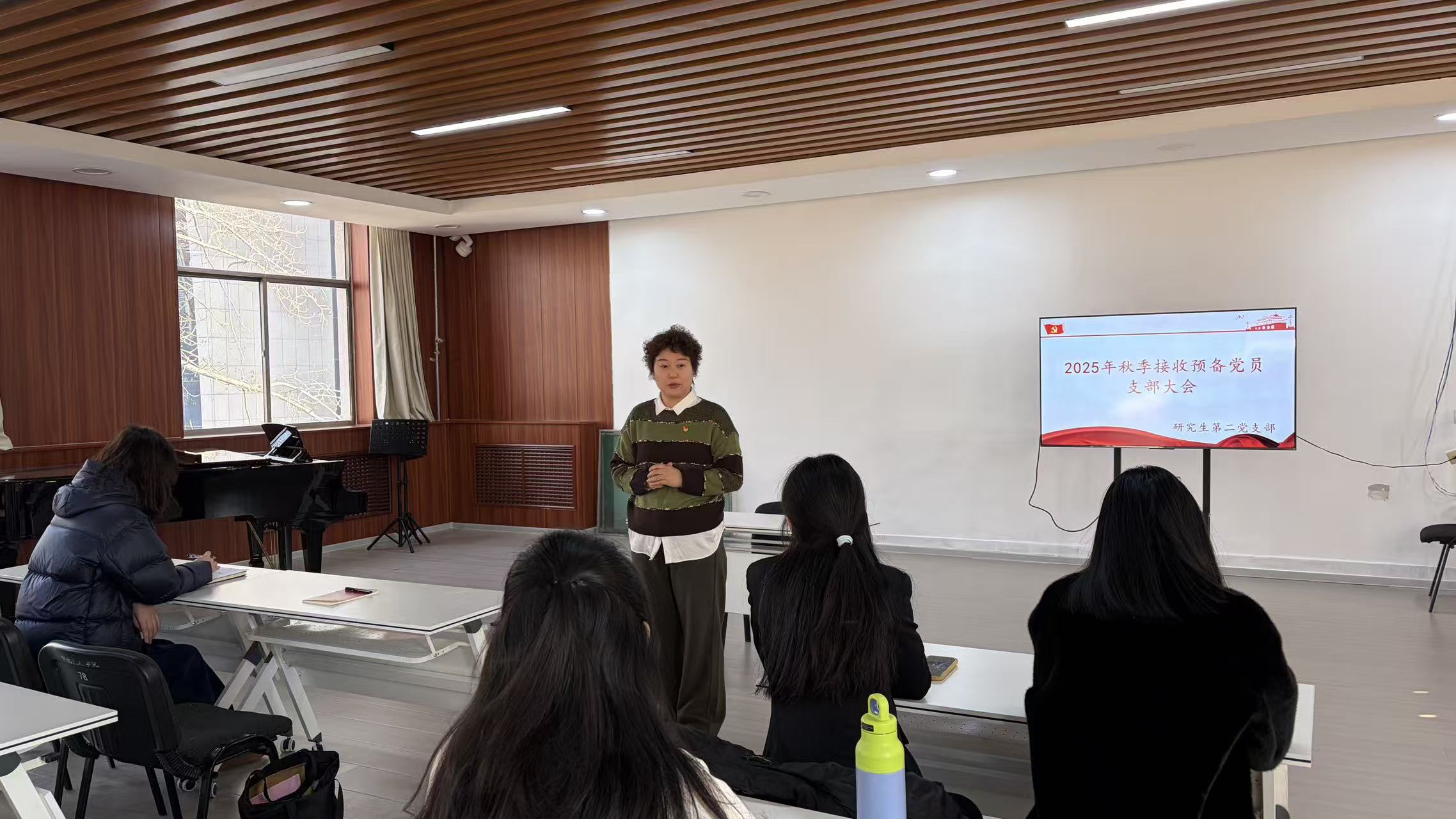 研究生第二党支部在12号楼三层本科生教室召开2025年秋季党员发展大会。大会讨论接收郭西南、冯晨2名同志为预备党员的问题。本支部共有党员23名,应到23名,实到23名。应到会有表决权的正式党员20名,实到会有表决权的正式党员20名。有表决权的正式党员到会人数超过应到会有表决权人数的半数,符合会议规定人数。
