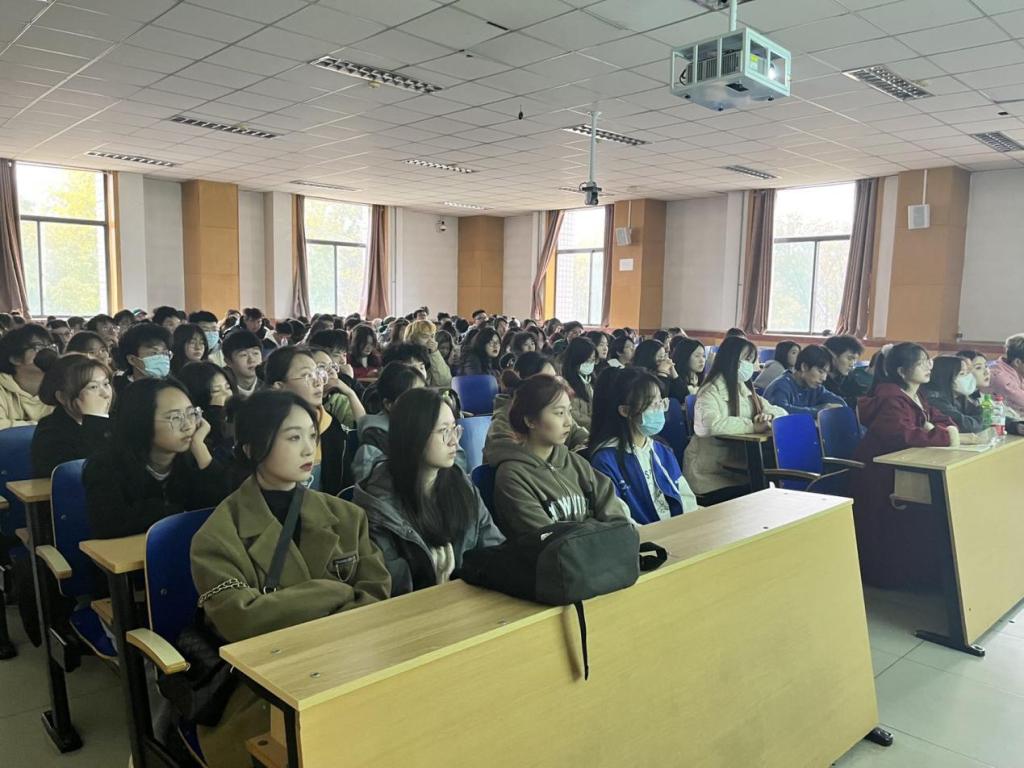 首先,夏志丽老师从升学和就业角度为大家讲了优秀毕业生的学习经历和优秀经验,她用有趣和生动形象的方式教育学生有效利用和安排大学四年的时光,通过提问等方式加强与同学们的互动,为同学们答疑解惑,现场气氛活跃,希望同学们收获成功的大学生涯。
