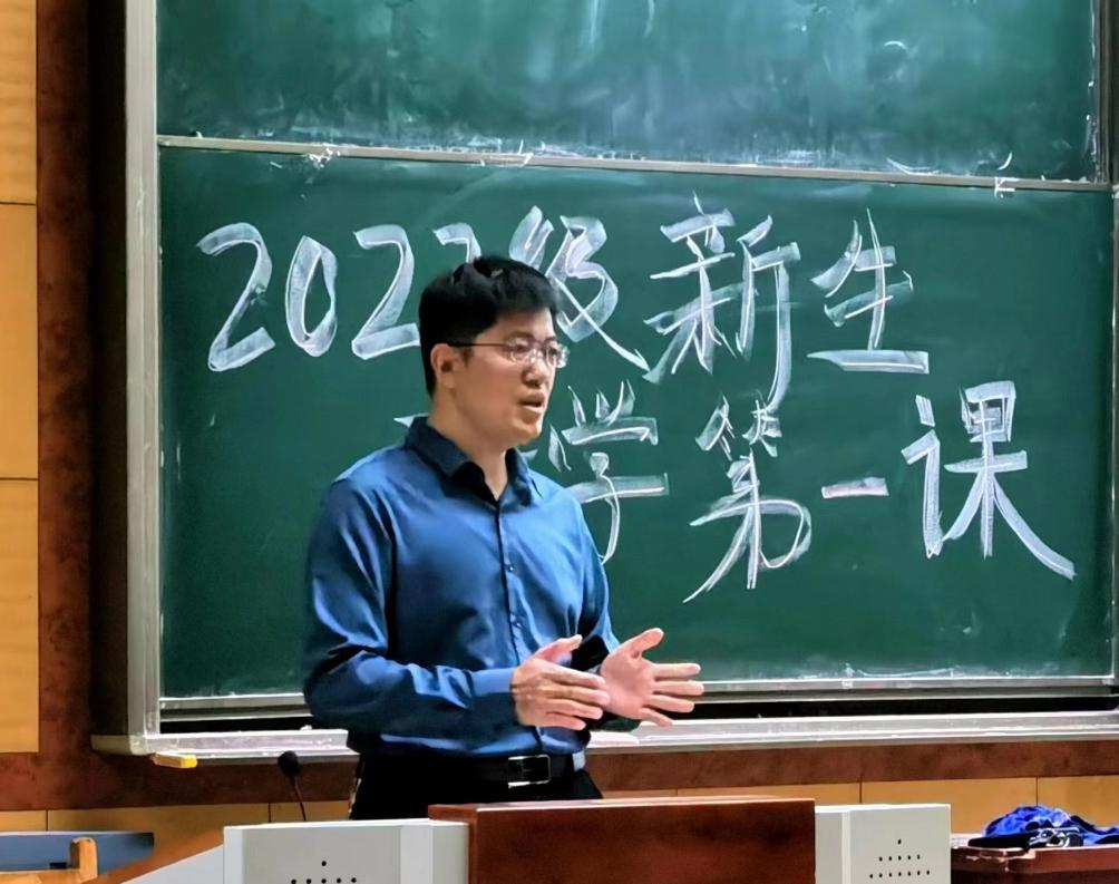 党委副书记田维飞在09101H教室为2022级新生以“绽放青春,开启大学精彩生活”为题,为新生讲授“开学第一课”。