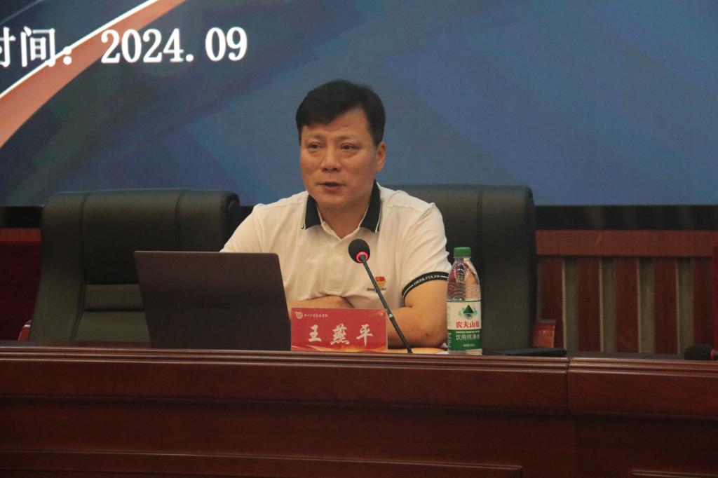 王院长首先代表学院全体师生向2024级新生表示热烈欢迎,他希望2024级全体新生在中北大学的广阔天地里,学有所成,健康成长,放飞梦想,实现理想。讲座中,王院长引用奥运健儿的案例鼓励同学们要坚持梦想、努力奋斗,要明确当代青年人的责任与担当,通过处理远与近、快与慢、博与专的关系中让同学们找到成长的方向。他强调全面发展的重要性,让同学们明白德才兼备是人才培养的核心,也懂得了在独与众之间寻找平衡,实现个人与社会的和谐共生。他鼓励同学们,在这个充满机遇与挑战的新时代下,要秉承“致知于行”校训,要将所学知识运用到实践中,肩负起历史赋予的使命,以艺术之名,为祖国的繁荣富强贡献自己的力量。