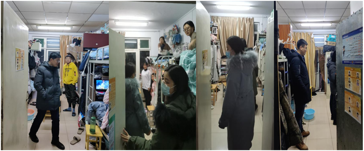 本次检查重点是学生晚归、夜不归宿、未经批准在外住宿、宿舍内违规使用大功率电器、饲养宠物、杂物堆放等其他具有宿舍安全现象进行检查和督促整改。在检查过程中老师们对于出现的问题进行了指正,提醒同学们保持整洁的宿舍卫生环境,同时检查了洗漱用品、日常生活物品的摆放,查看了屋内电线电路,宿舍值日制度等。询问了宿舍同学关于安全用电、防盗防骗防火等日常宿舍生活中需要掌握的基本知识、防范基本技能等问题,并对发现的问题及时给予指正,争取做到发现问题并解决问题,消除细微的安全隐患。