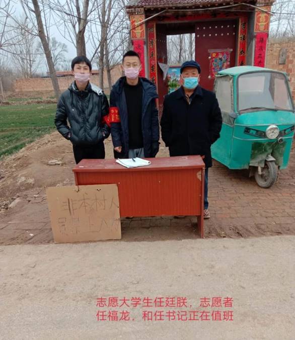 2020年1月,伴随着病人一阵阵咳嗽声,一场没有硝烟的战争打响了,白衣天使奋战在抗疫一线,她们不惧危险,履行着医生的职责。虽然我们普通人不能上前线,但我们大家也都心系武汉,捐钱捐物,积极充当防疫志愿者,我在村里值了两次班,早上带好口罩去到村口,做好自己的工作:禁止外来人员进村,对过往人员消毒,定期给各胡同消毒,用自己的方式来守护村庄。