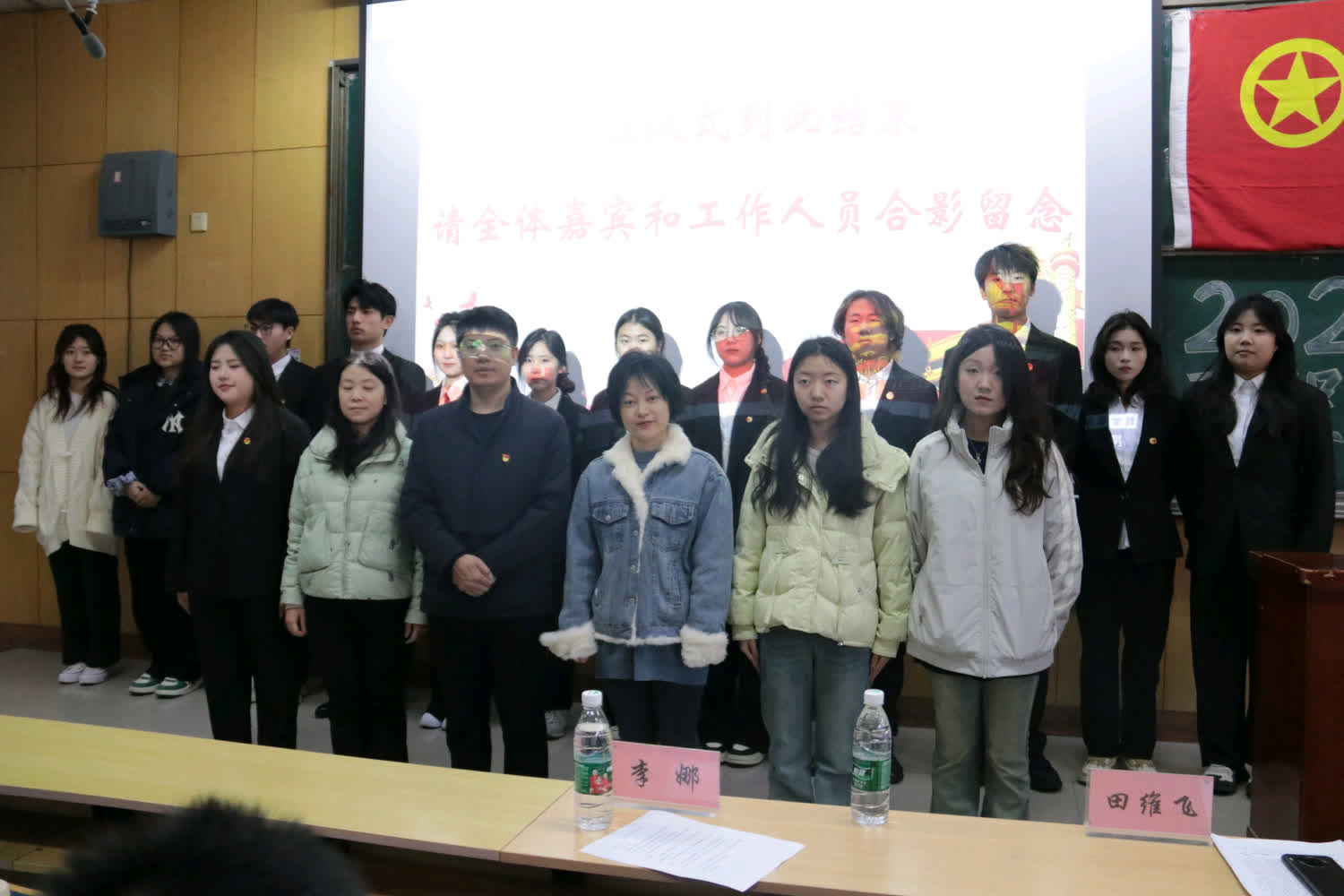 与人文社会科学学院的工作人员、同学们合影留念。