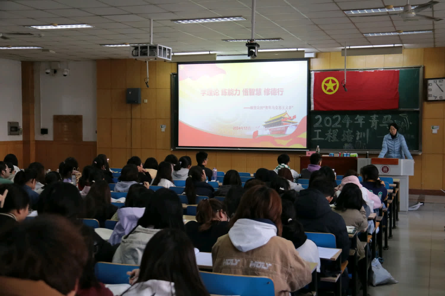 党委副书记田维飞老师、校团委崔媛老师、材料科学与工程学院毋登辉老师分别就《担当时代责任,提高学生号本领》、《坚定理想信念,做一名真正的“”青马人》、《新时代学生干部队伍建设》三个专题开展讲座,深刻阐述了担当时代责任、坚定理想信念及新时代学生干部队伍建设的重要性。培训课上老师们纷纷告诫学员们,作为青年马克思主义者,应勇于承担历史使命,不断提升自我能力;要坚守信仰,做真理的追寻者与传播者;更要在新时代背景下,加强学生干部队伍建设,成为引领青年、服务社会的中坚力量。希望我们能够将所学内化于心、外化于行,以实际行动践行青马精神,为国家和民族的复兴贡献青春力量。